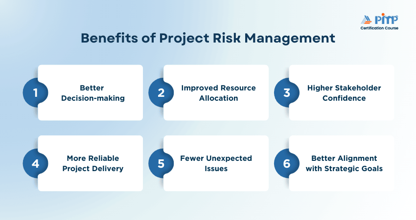 Good Risk Management helps teams prepare for challenges before they happen. It supports smarter choices, smoother delivery, and stronger trust among stakeholders. By planning ahead, teams can handle issues with confidence and keep projects moving in the right direction. Some of the advantages include: