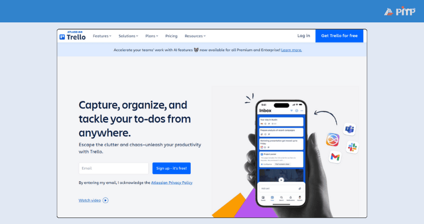 Trello’s Slack integration lets you create and manage Trello cards and boards from within Slack. Pasting a Trello link previews cards and details, thus reducing app-switching and keeping task context in conversations.